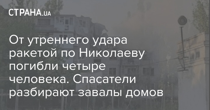 От утреннего удара ракетой по Николаеву погибли четыре человека. Спасатели разбирают завалы домов