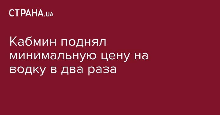 С 55 грн минимальную стоимость повысили до 69,78 грн. "Минимальная цена на 0,5 л водки в 40 градусов составит 69,78 грн", - сказал министр экономического развития и торговли Степан Кубив, представляя постановление во время заседания правительства.