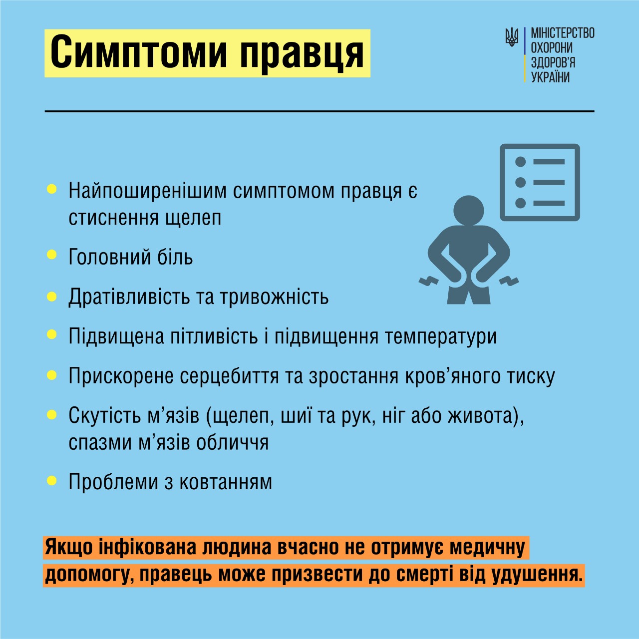 Минздрав публикует инфографику с подробной информацией о симптомах и процессе инфицирования столбняком.