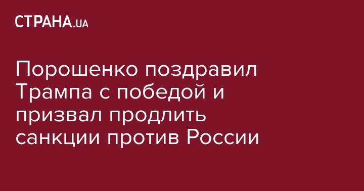 Порошенко поздравил Трампа с победой и призвал продлить санкции против России