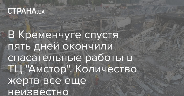 В Кременчуге спустя пять дней окончили спасательные работы в ТЦ "Амстор". Количество жертв все еще неизвестно