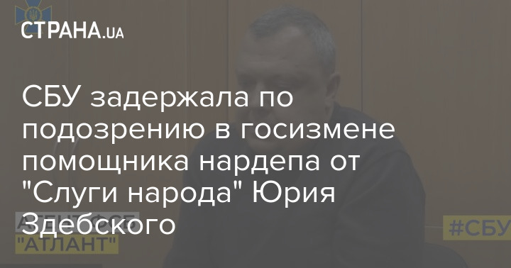 По данным "Страны", СБУ задержала по подозрению в госизмене помощника нардепа от "Слуги народа" Юрия Здебского.