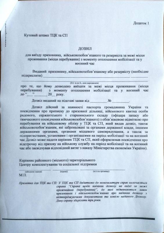 Важный момент из этого Порядка - в отдельных случаях также могут выдаваться такие разрешения военкомом - до 30 суток.