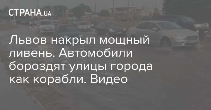 Львов накрыл мощный ливень. Автомобили бороздят улицы города как корабли. Видео