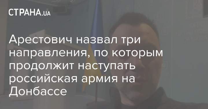 Арестович назвал три направления, по которым продолжит наступать российская армия на Донбассе