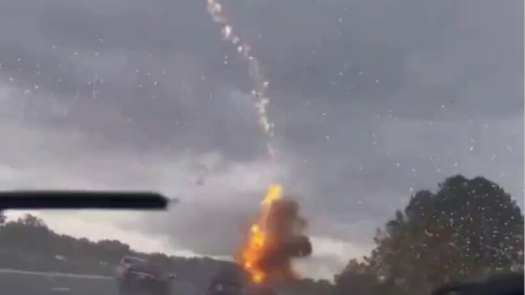В США жительница Флориды записала на видео во время грозы удар молнии, который пришелся в следующий впереди нее автомобиль, в котором находилась семья женщины.