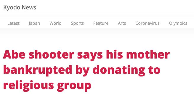 Этой религиозной структуре мать убийцы пожертвовала крупную сумму денег, из-за чего обанкротилась, сообщил Тэцуя Ямагами полиции.