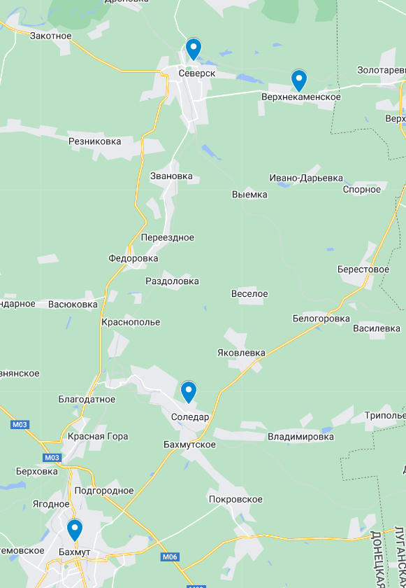 Российские телеграм-каналы вчера, напомним, заявляли о выходе противника на западные окраины Верхнекаменского (Верхнекаменское от Северска всего в двух километрах). А также на окраины самого Северска, который, по утверждению "ЛДНР", находится под их "оперативным контролем".