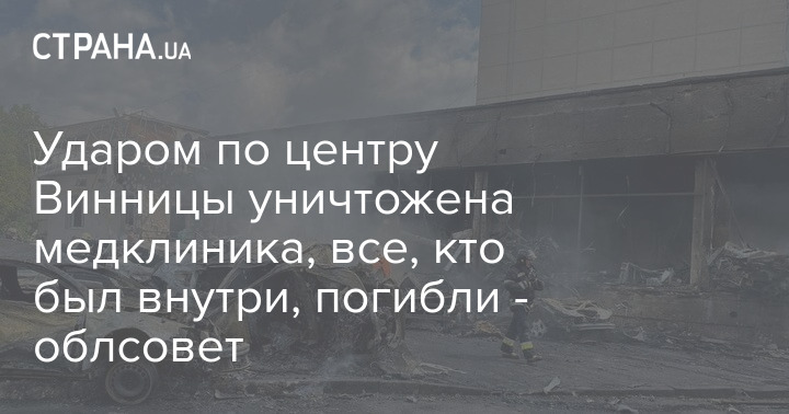 Ракетным ударом по центру Винницы также зацепило диагностическую клинику. По предварительным данным, все люди, которые были внутри, погибли.