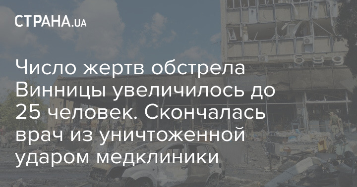 В Виннице до 25 увеличилось число жертв ракетного обстрела. Сегодня в больнице скончалась врач-невролог Наталья Фальштинская.