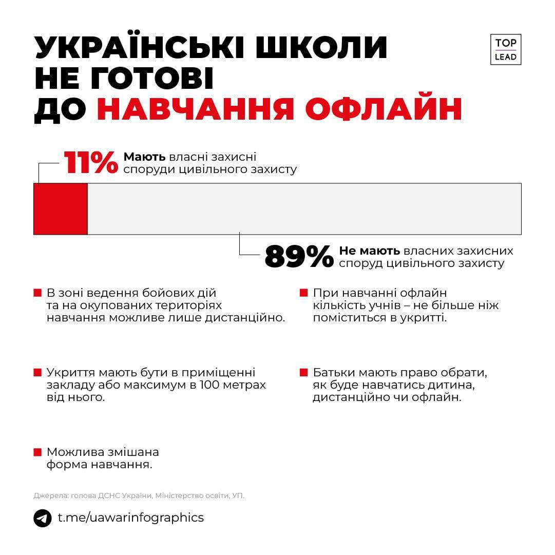 Напомним, как заявляла глава Минреинтеграции Ирина Верещук, школы без бомбоубежищ "нельзя рассматривать как объекты, где могут находиться дети и где можно проводить оффлайн-обучение".