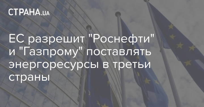ЕС разрешит "Роснефти" и "Газпрому" поставлять энергоресурсы в третьи страны