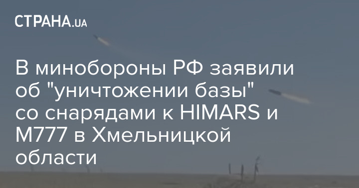 В минобороны РФ прокомментировали позавчерашний ракетный удар по Хмельницкой области. Там заявляют о якобы уничтожении "перевалочной базы" со снарядами к РСЗО HIMARS и гаубицам М777.