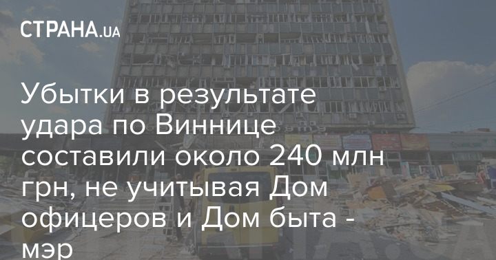 Убытки в результате удара по Виннице составили около 240 млн грн, не учитывая Дом офицеров и Дом быта - мэр