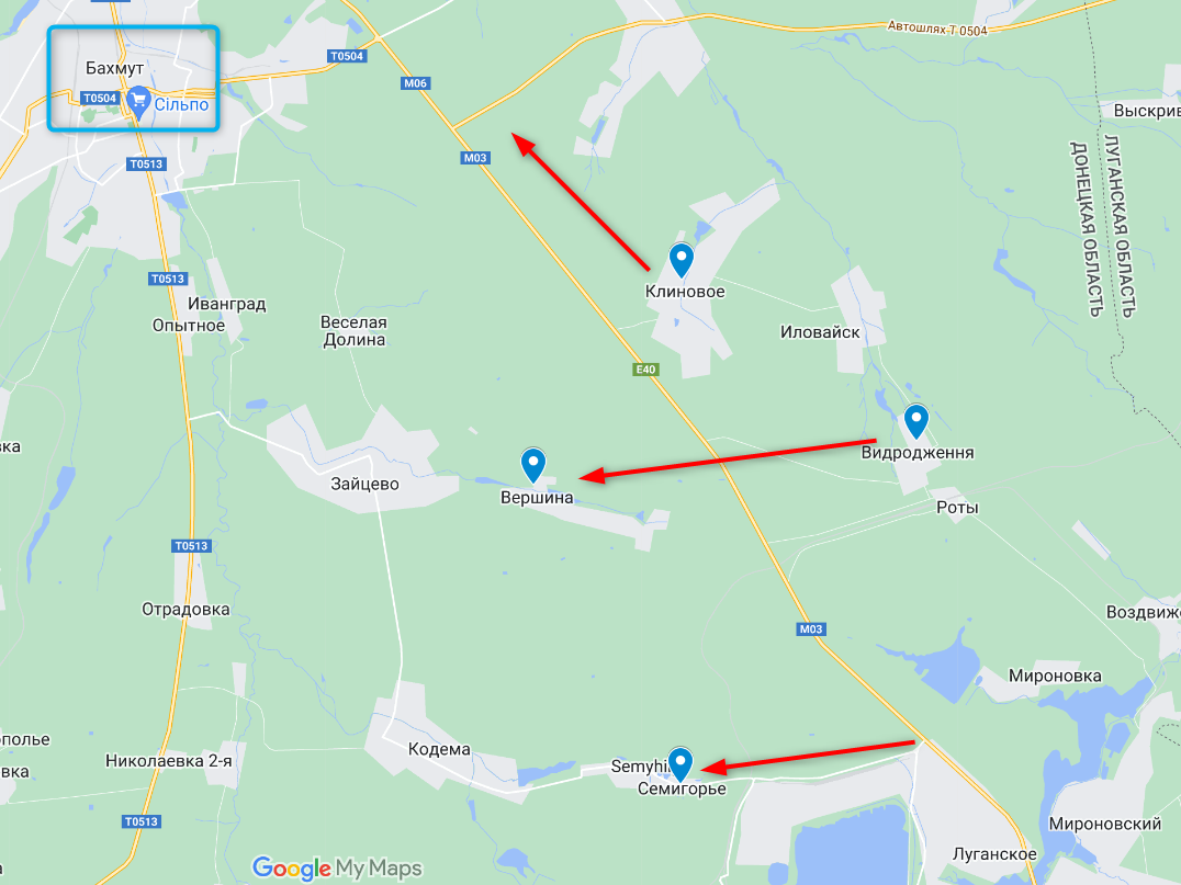 Сегодняшние сводки сообщают, что основное наступление россиян разворачивается к югу и востоку от Бахмута.