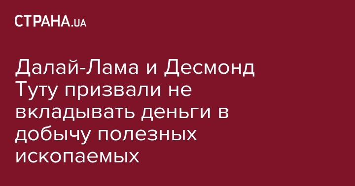 Далай-Лама и Десмонд Туту призвали не вкладывать деньги в добычу полезных ископаемых