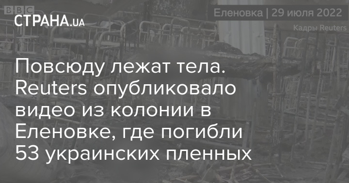 Агентство Reuters опубликовало видеорепортаж из временно неподконтрольной Еленовки Донецкой области, где в результате обстрела погибли 53 украинских военнопленных.
