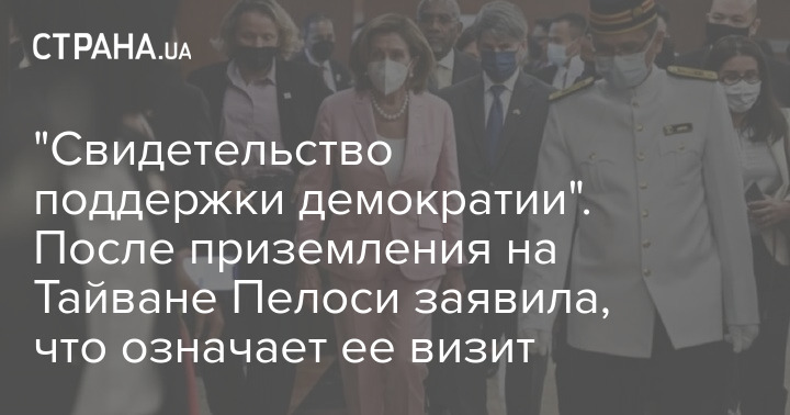 "Свидетельство поддержки демократии". После приземления на Тайване Пелоси заявила, что означает ее визит