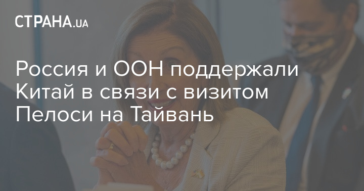 Организация Объединенных Наций и Россия отреагировали на визит спикера палаты представителей Конгресса США Нэнси Пэлоси на Тайвань. Обе стороны поддержали Пекин, но дали разную эмоциональную оценку действиям США.