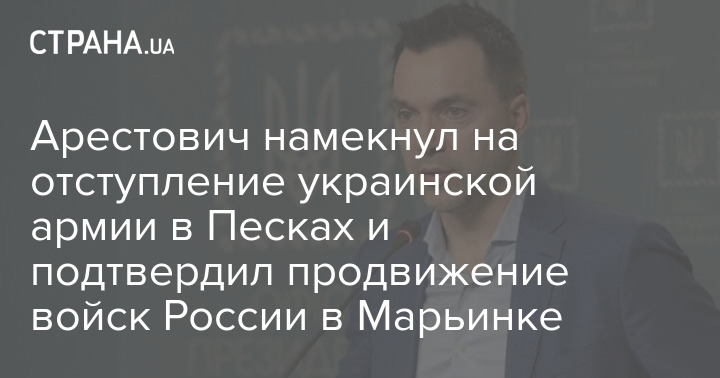 Советник главы Офиса президента Алексей Арестович намекнул на отступление украинской армии в Песках и подтвердил продвижение противника в Марьинке.