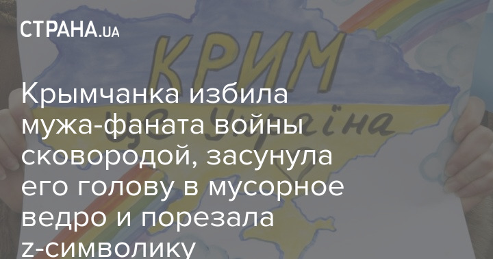 Крымчанка избила мужа-фаната войны сковородой, засунула его голову в мусорное ведро и порезала z-символику