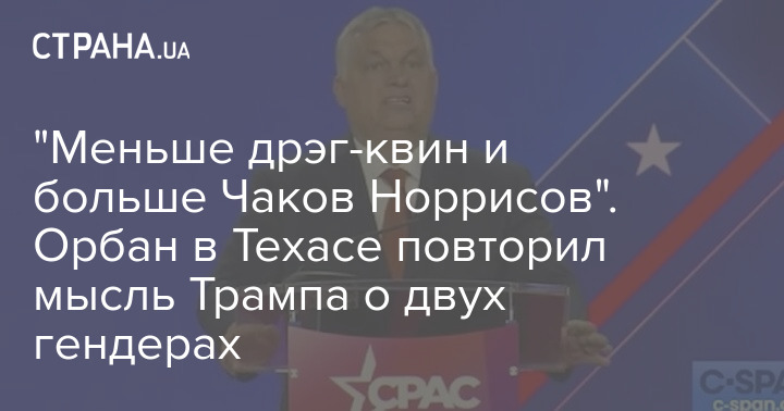 Выступая на конференции консерваторов в Техасе, Орбан заявил, что "нам не нужно новых гендеров, нам нужно больше рейнджеров".