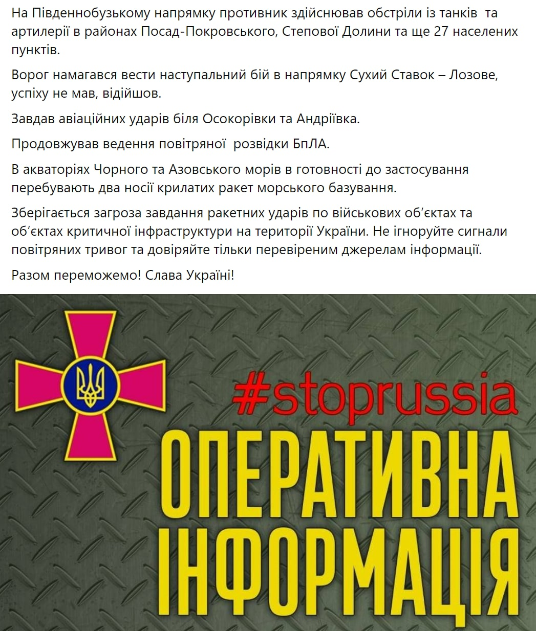 Появилась утренняя сводка Генштаба ВСУ. Фото: Facebook