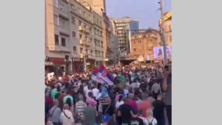 В Белграде десятки тысяч людей вышли на акцию протеста против ЛГБТ-парада. Видео
