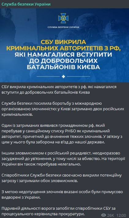 СБУ задержала двух российских криминальных авторитетов, которые пытались вступить в добровольческий батальон