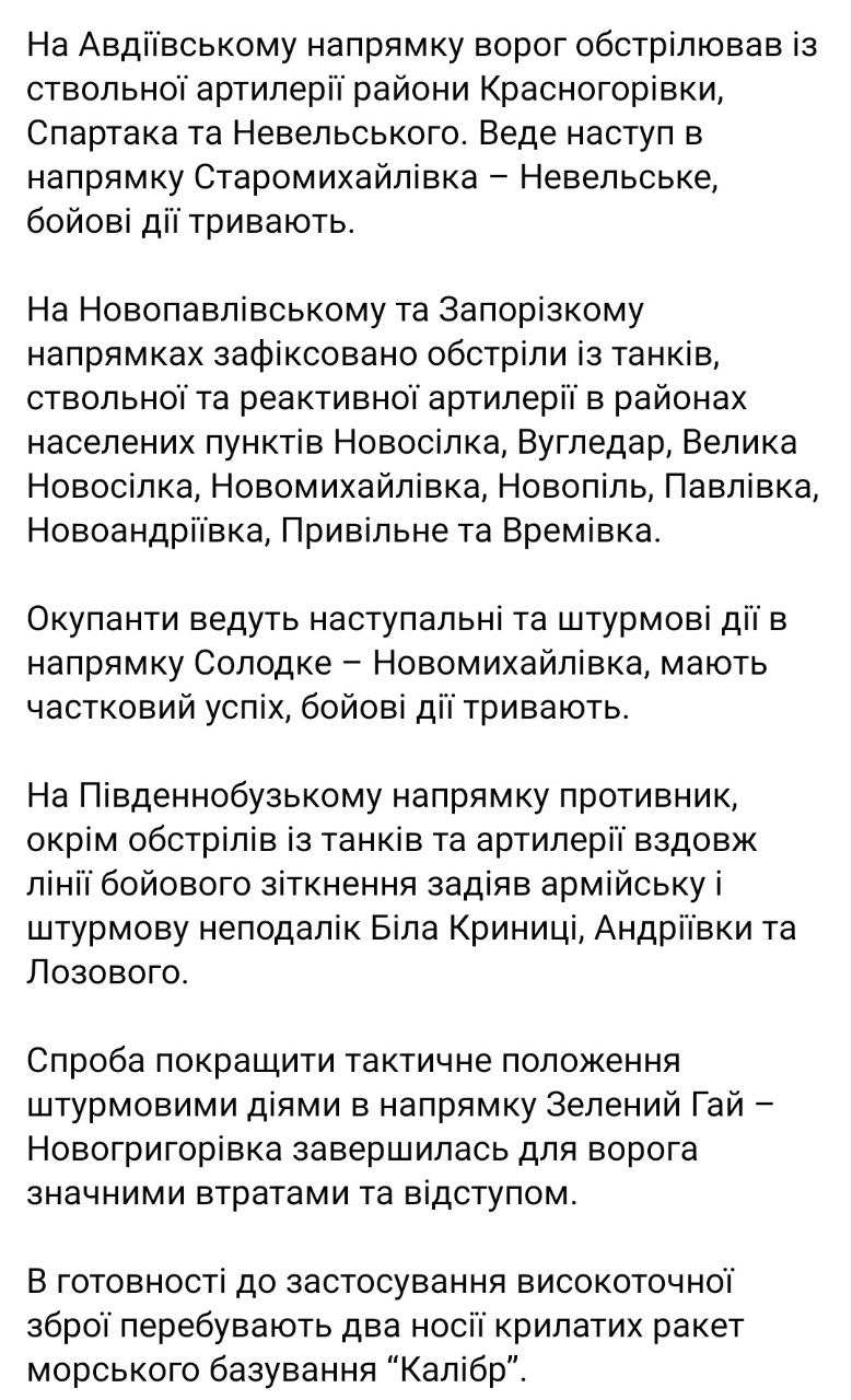 На остальных направлениях штурмовые действия РФ были отбиты, говорится в сообщении.