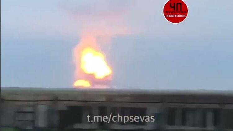 Клубы огня после взрыва в Крыму. Скриншот из видео