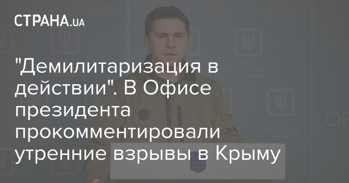 В Офисе президента, прокомментировали утренние взрывы на складе боеприпасов под Джанкоем. Там назвали это "демилитаризацией в действии".
