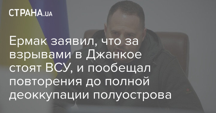 Глава Офиса президента Андрей Ермак намекнул, что за сегодняшними взрывами на складе боеприпасов в Крыму стоят ВСУ и что такая "демилитаризация" продолжится до освобождения Крыма.