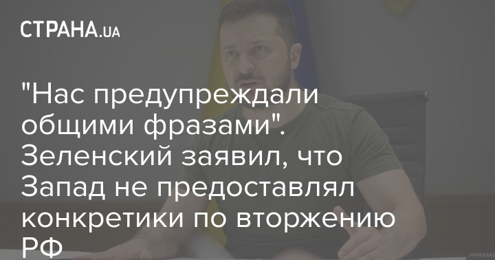 "Нас предупреждали общими фразами". Зеленский заявил, что Запад не предоставлял конкретики по вторжению РФ