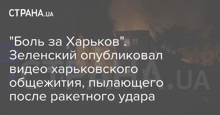 "Боль за Харьков". Зеленский опубликовал видео харьковского общежития, пылающего после ракетного удара