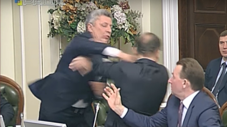 После этой фразы Бойко, который сидел рядом с Ляшко, резко поднялся и ударил его кулаком в лицо, завязалась потасовка, во время которой лидер Радикальной партии продолжал эмоционально высказываться.