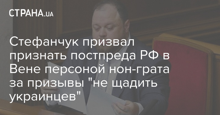 Спикер Верховной Рады Руслан Стефанчук заявил, что постоянный представитель России при международных организациях в Вене Михаил Ульянов должен быть признан персоной нон-грата и выслан в РФ за призывы "не щадить украинцев". Такое мнение Стефанчук высказал у себя в Facebook.