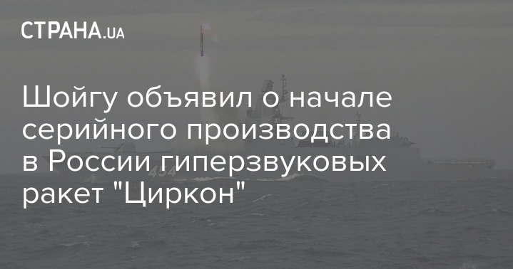 Министр обороны РФ Сергей Шойгу заявил, что в России начинается серийное производство гиперзвуковых ракет "Циркон".