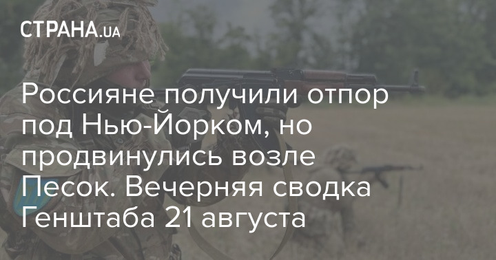 В Генеральном штабе Вооруженных сил Украины опубликовали оперативную сводку с фронта по состоянию на 18:00 21 августа. Сообщается, что российские войска отступили от Нью-Йорка, но продвинулись вблизи Песок.