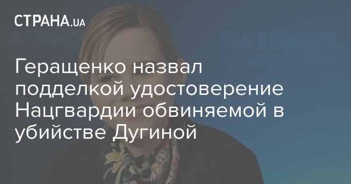 Геращенко назвал подделкой удостоверение Нацгвардии обвиняемой в убийстве Дугиной