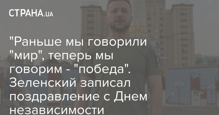 "То есть "война до победы" и отказ от территориальных уступок России - это основная мысль поздравления Зеленского", - комментирует ролик президента телеграм-канал "Политика страны".