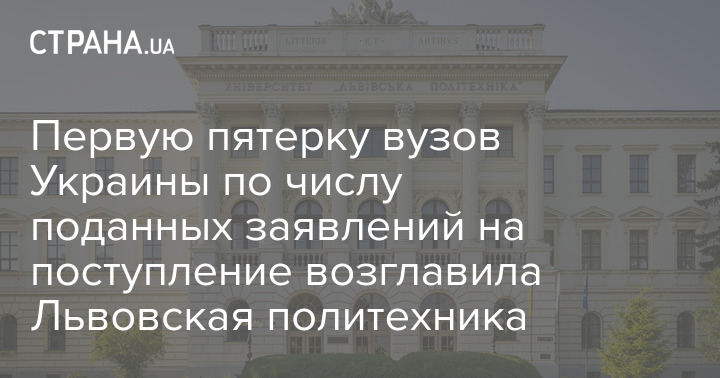 Первую пятерку вузов Украины по числу поданных заявлений на поступление возглавила Львовская политехника