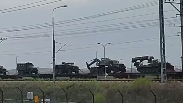 Кроме этого, есть танки Т-72 и Т-80, боевые машины пехоты, грузовые автомобили – в том числе на базе ракетных тягачей. В составе воинского эшелона - крытые вагоны и цистерны с топливом.