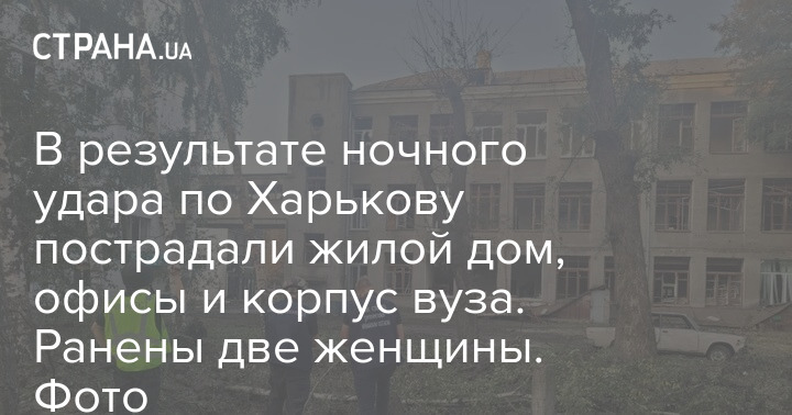 В результате ночного удара по Харькову пострадали жилой дом, офисы и корпус вуза. Ранены две женщины. Фото