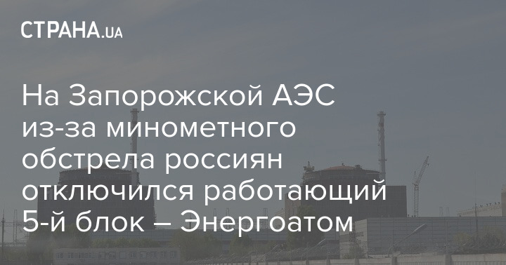 "Энергоатом" обвинил россиян в минометном обстреле станции, в результате которого сработала аварийная защита и отключился работающий 5-й энергоблок на ЗАЭС.