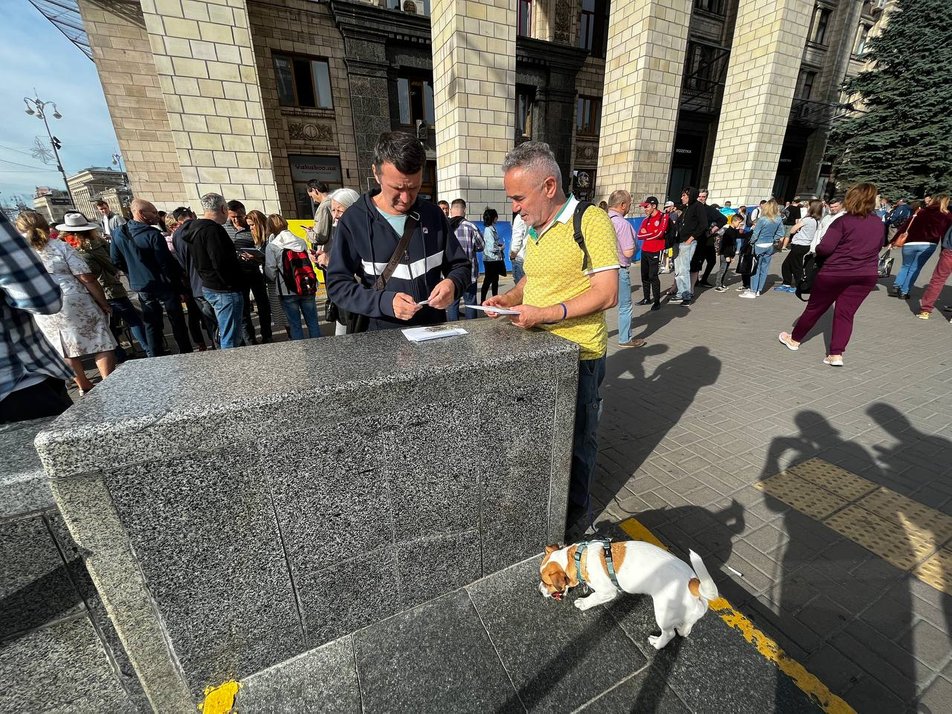 "Укрпочта" выпустила новую марку "Пес Патрон". С самого утра за ней выстроилась очередь у главпочтамта. Фото