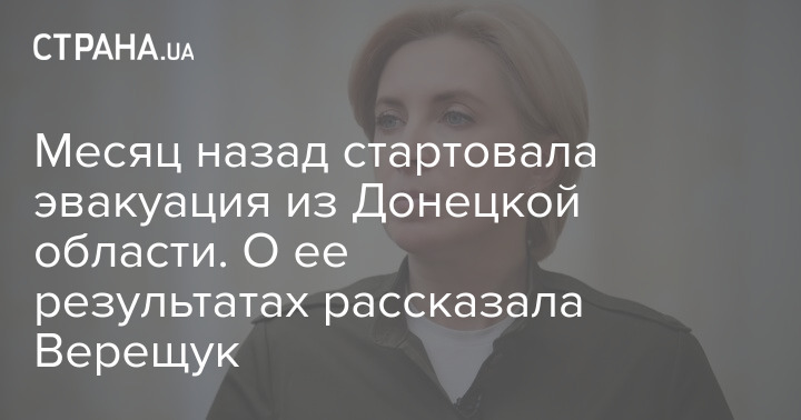 Месяц назад стартовала эвакуация из Донецкой области. О ее результатах рассказала Верещук