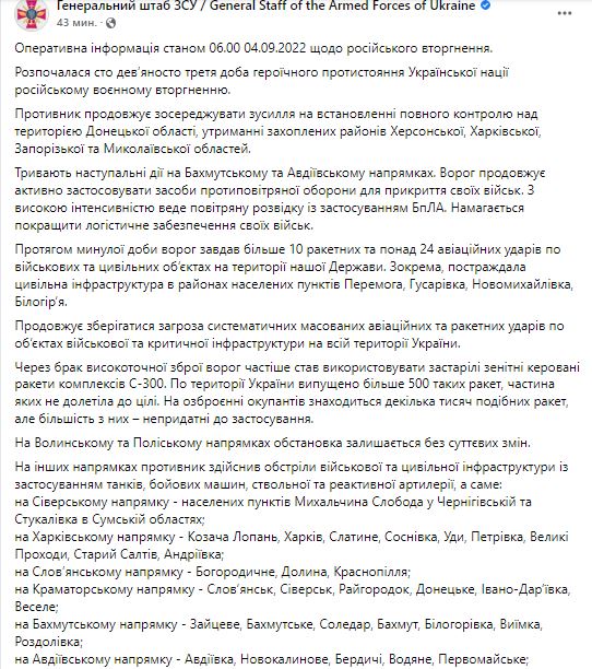 08.10 Ключевое из утренней сводки Генштаба: