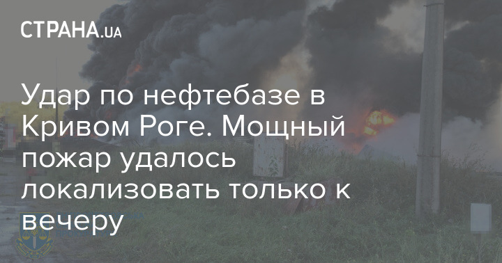 Пожар на нефтебазе в Кривом Роге Днепропетровской области, вспыхнувший после удара сегодня утром, удалось локализовать.