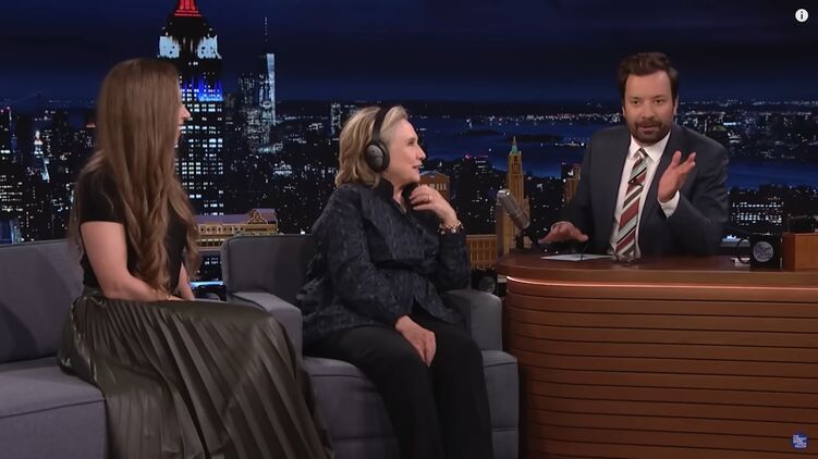 Во время эфира Хиллари и Челси Клинтон приняли участие в челлендже, отвечая на вопросы ведущего. Фэллон спросил у бывшей первой леди о "самом сумасшедшем воспоминании в семейном отпуске".